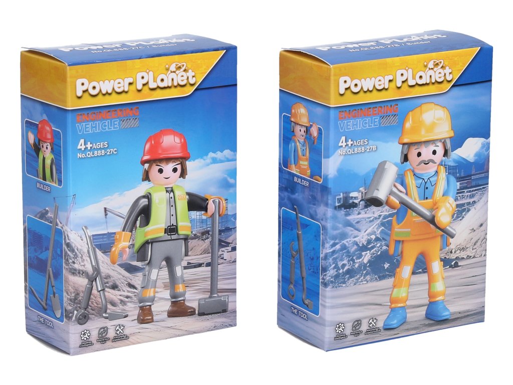 Figurka dělník stavebnice. Velikost figurky 7 cm. Obsahuje: figurku, návod na sestavení, nářadí. Display box 16 ks. Více variant.