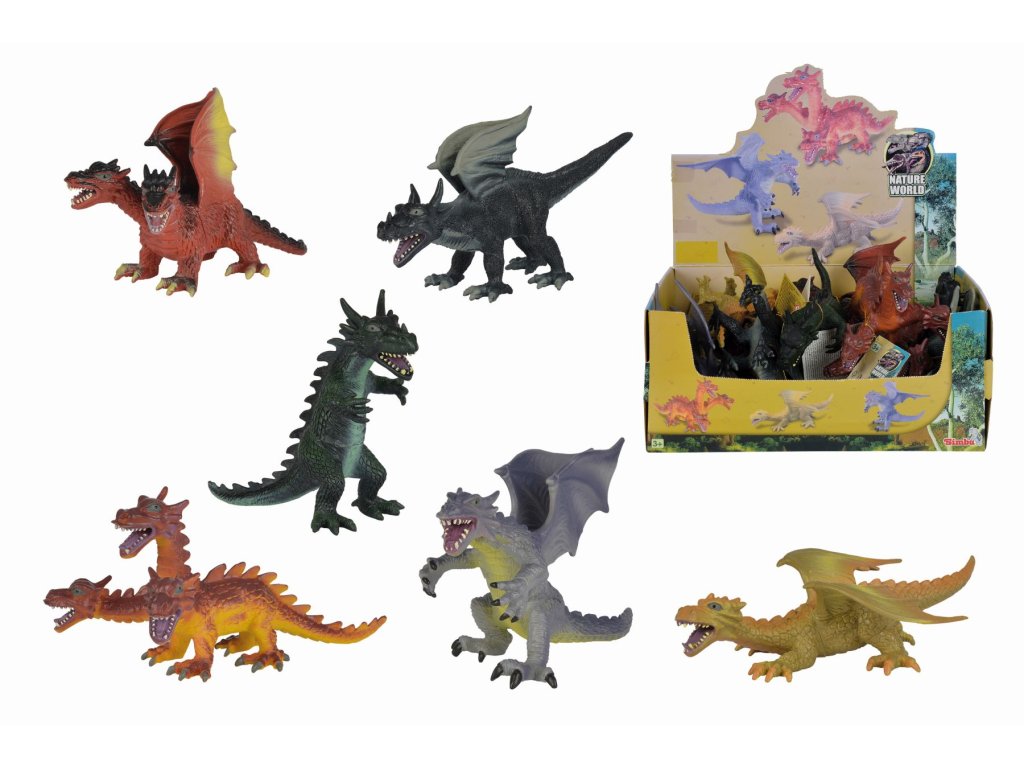 Malé plastové figurky draků. Velikost 17 - 25 cm. Displej 12 ks.