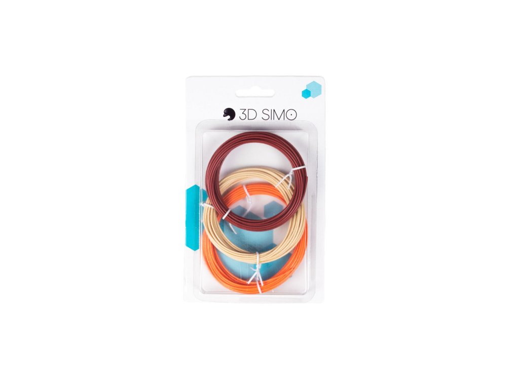 Filamenty (struny) do 3D per/3D tiskáren, hnědá, tělová, oranžová, celkem 15m