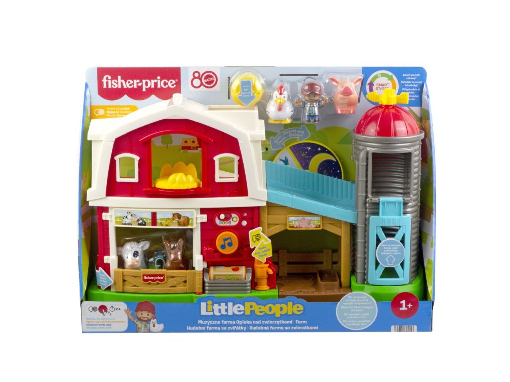 Malé děti si mohou užít nekonečné hodiny imaginativní hry a vyprávění příběhů s interaktivním herním setem Little People od Fisher-Price. Tato dvoupatrová farma nabízí spoustu zábavných aktivit po celém obvodu, včetně sila, do kterého lze vhazovat předměty, a několika stájí pro ustájení a péči o zvířátka. Díky technologii Smart Stages se děti během hry učí protiklady, barvy, počítání a mnoho dalšího – pomocí více než 50 písniček, zvuků a frází. Součástí balení je 1 figurka farmáře, 4 zvířátka a 1 hrací dílek balíku sena. Pomocí tlačítka ve tvaru glóbu si můžete zvolit jazyk: polštinu, maďarštinu, češtinu, slovenštinu nebo angličtinu. Vyžaduje 2 AA baterie (jsou součástí balení). Barvy a vzhled výrobku se mohou lišit.