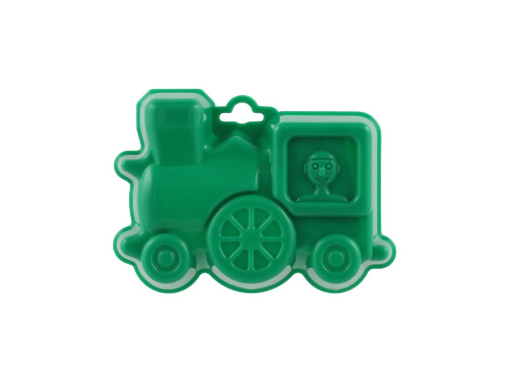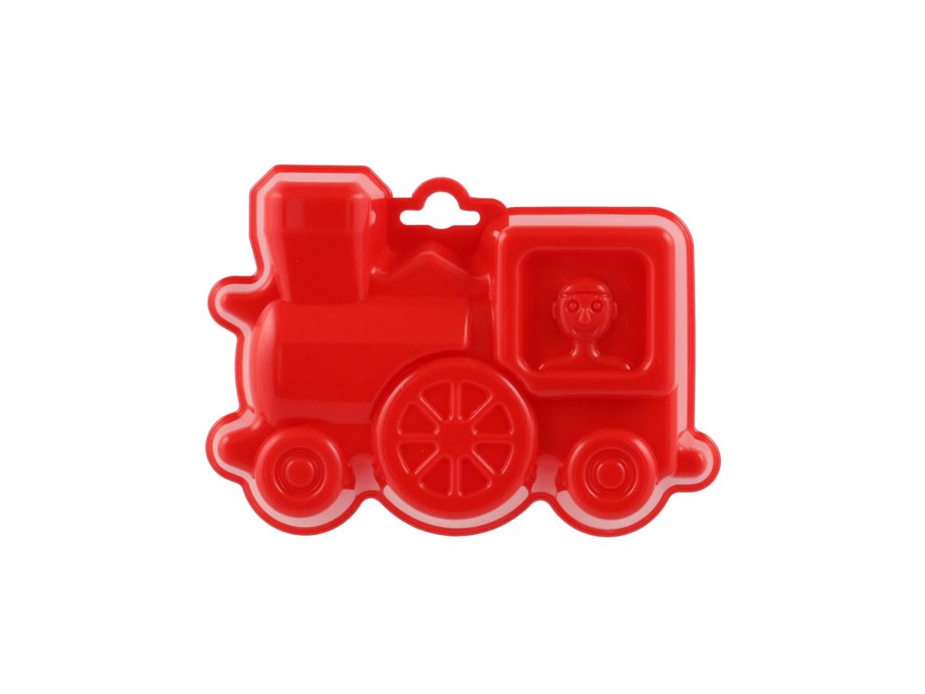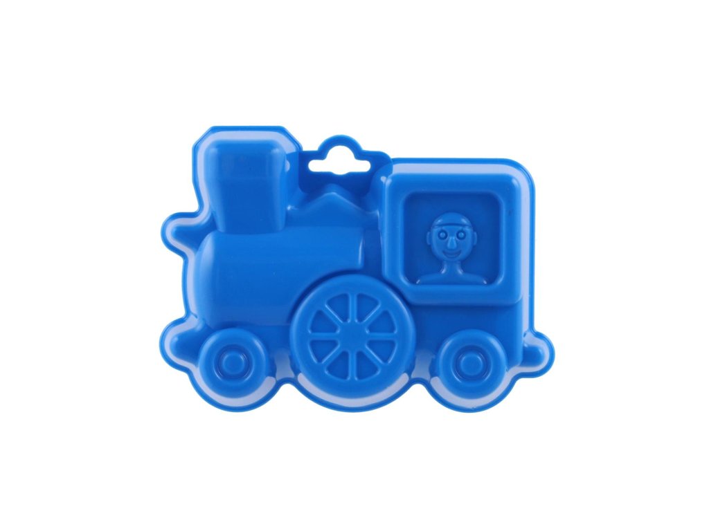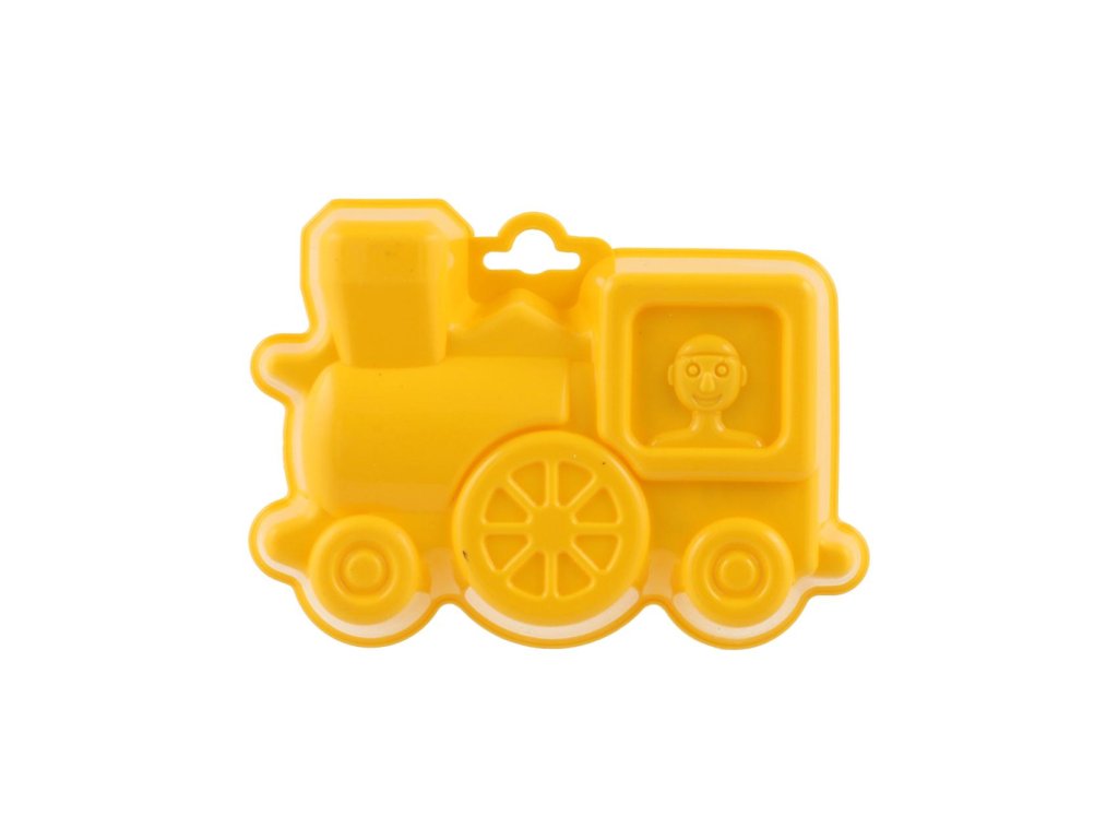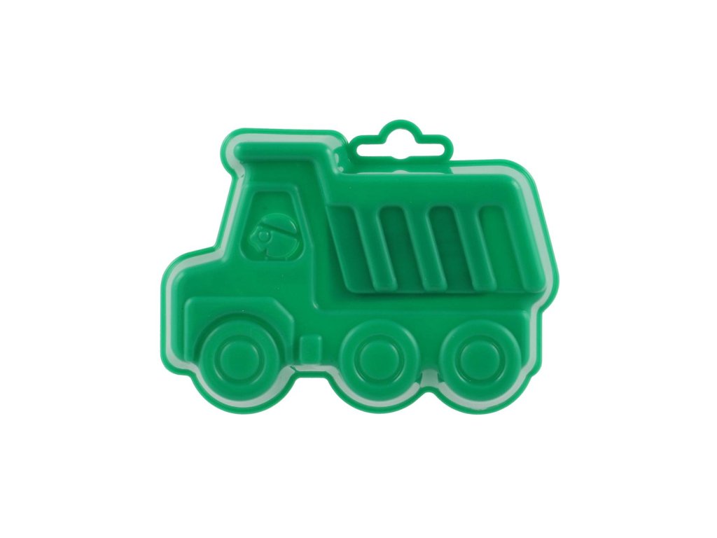 Plastové bábovky na písek ve tvaru dopravních prostředků.