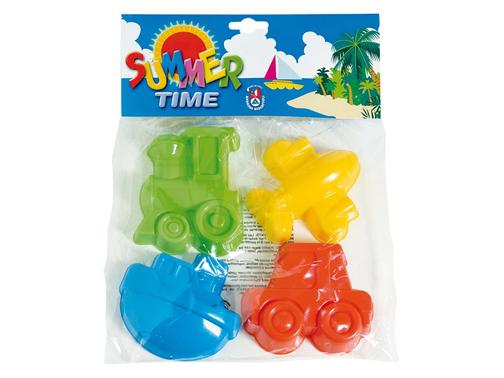 na písek. Set obsahuje 4 ks báboviček v designu dopravních prostředků.