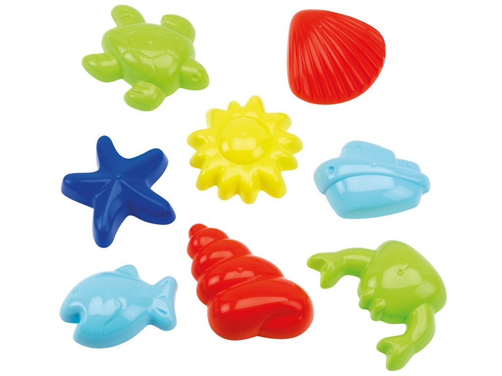na písek s mořskou tématikou. Obsahuje 8 ks formiček. Výška formičky cca 10 cm. Vyrobeno v EU.
