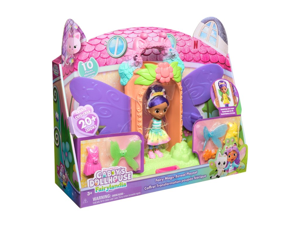 Vstupte do kouzelného světa Fairylandie z Gábinina kouzelného domku s okouzlující herní sadou proměny ve vílu! Děti mohou k figurkám snadno připevnit jeden z párů vílích křídel pomocí magnetů ve tvaru motýla a jeden z vílích topů pomocí magnetů ve tvaru kočičky pro rychlou a intuitivní přípravu celé scény. Stačí umístit Gábi doprostřed a zatáhnout za růžovou páčku, aby se před očima proměnila v kouzelnou vílu. S více než dvaceti různě kombinovatelnými oblečky, které lze libovolně tvořit a měnit, a s osmi doplňky včetně odnímatelné čelenky s kočičími oušky, bot, hůlky a vílích topů tato sada podporuje kreativitu, vlastní styl a nekonečná dobrodružství plná fantazie. Panenka Gábi měří 15 cm, má dlouhé vlasy vhodné k česání a pohyblivou hlavu i končetiny, takže děti mohou doma vytvářet další kouzelná dobrodružství z Fairylandie. Pro všechny, kdo milují doplňky do kouzelného domečku, je tato sada mňau-úžasnou volbou k narozeninám, Vánocům nebo jakékoli kouzelné příležitosti. Děti mohou objevovat vlastní záhady a připojit se ke Gábi a jejím kamarádům z kouzelného domečku při společném hraní. Znovu prožijí oblíbené momenty ze seriálu Gábinin kouzelný domek, nebo si vymyslí úplně nové příběhy s Gábi, jejími kočičkami a jejich doplňky pro nekonečná kočičí dobrodružství inspirovaná seriálem.