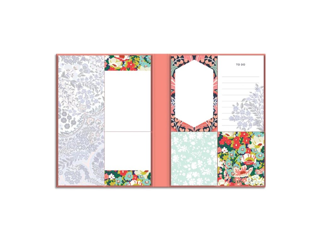 Studio Liberty London je známo svými květinovými a grafickými potisky a nabídkou inovativních a eklektických vzorů. "Kniha" zobrazuje ikonické květinové vzory. Tato speciální sada lepicích papírků v pevné vazbě obsahuje 7 zdobených bloků ve třech různých velikostech pro celkem 540 lepicích papírků. Hlavní vlastnosti: 7 zdobených bloků3 velikosti bločků540 lepicích papírkůideální pro domácí kancelář