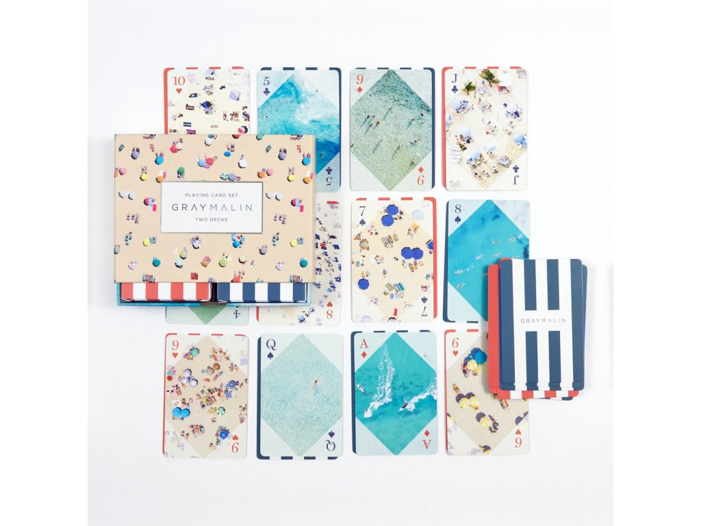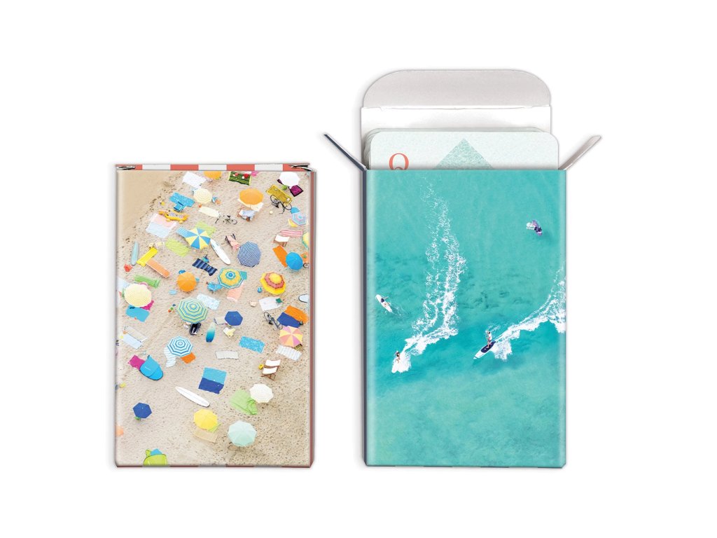 Sada originálních kanastových (žolíkových) hracích karet v luxusní kartonové krabičce. Karty i jejich obal zdobí umělecké, letecké snímky pláže, které do Vaší hry vnesou okouzlující atmosféru letní pohody a slunce. Hlavní vlastnosti: 2 balíčky, 108 karet celkemumělecké fotografie, autor Gray Malinpraktické a luxusní balení