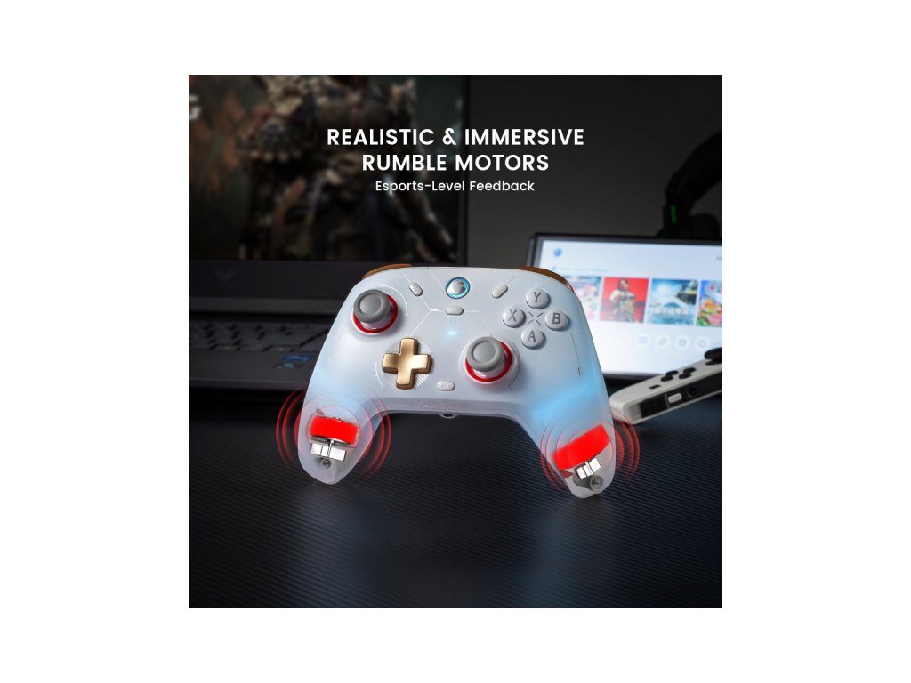 Realistické a jemné vibrace: Dva asymetrické Rumble motory poskytují pohlcující a realistickou vibrační zpětnou vazbu.