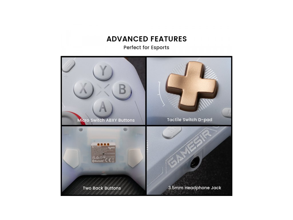 Tlačítka úrovně e-sportů: Přední mikroswitch tlačítka s životností až 5 milionů stisknutí. Hmatový spínač D-pad pro lepší herní zážitek.