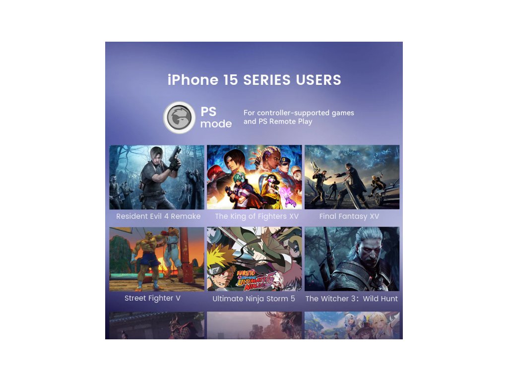 Univerzální Kompatibilita: Rozšiřitelný most a dostatečný zadní prostor zajišťují, že GameSir G8 Galileo sedne jako ulitý k vašemu zařízení, ať už je to iPhone 15 nebo jakýkoliv Android telefon.