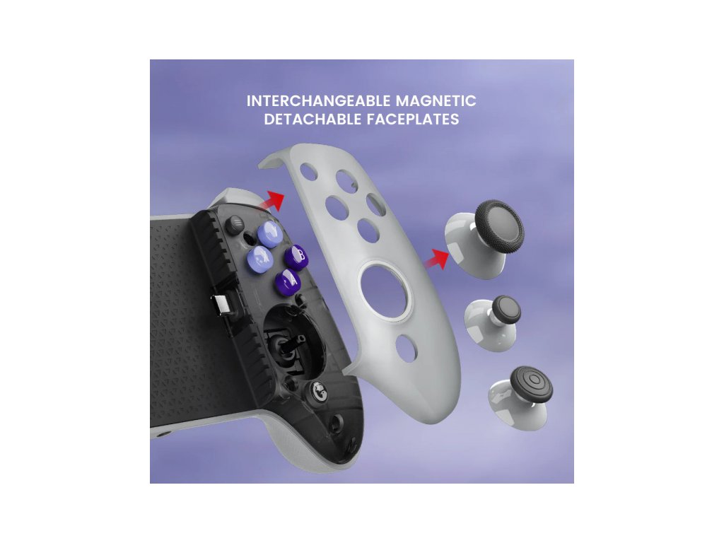 Vychutnejte si nepřetržitou akci s průchozím nabíjením, které zajišťuje, že vaše hraní nebude nikdy přerušeno nedostatkem energie. Rozšiřitelný most a dostatečný prostor na zadní straně zaručují univerzální kompatibilitu s různými zařízeními, zatímco vyměnitelné magnetické přední desky umožňují snadnou personalizaci a výměnu podle vašeho stylu.
