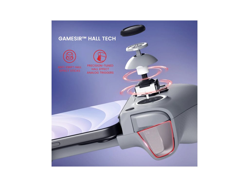 Odolnost a Dlouhověkost: GameSir™ Hall Tech s plnými Hall Effect senzory zaručuje, že vaše ovládání zůstane přesné a spolehlivé i po tisících hodinách hraní.