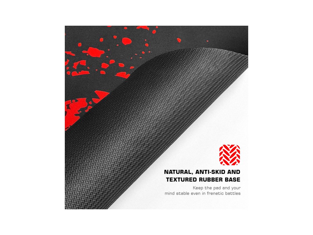 3. Přírodní, protiskluzová a texturovaná gumová základna: Podložka je vybavena přírodní a texturovanou gumovou základnou, takže zůstává na místě i ve frenetických bitvách, stejně jako udržuje stabilitu vaší mysli.