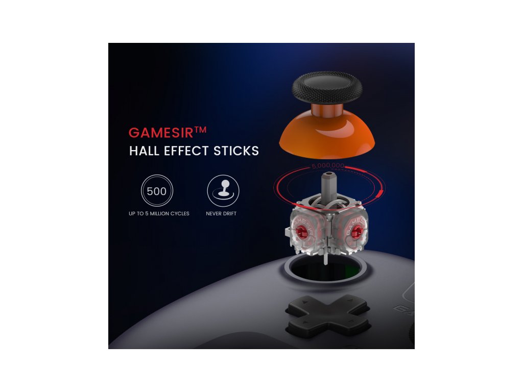 Páčky GameSir™ Hall Effect proti driftu, navržené pro přesnost a výkon páček proti driftu, dokonce poskytují větší konzistenci a hladkost pro maximalizaci vašeho výkonu díky speciálně optimalizovaným algoritmům.