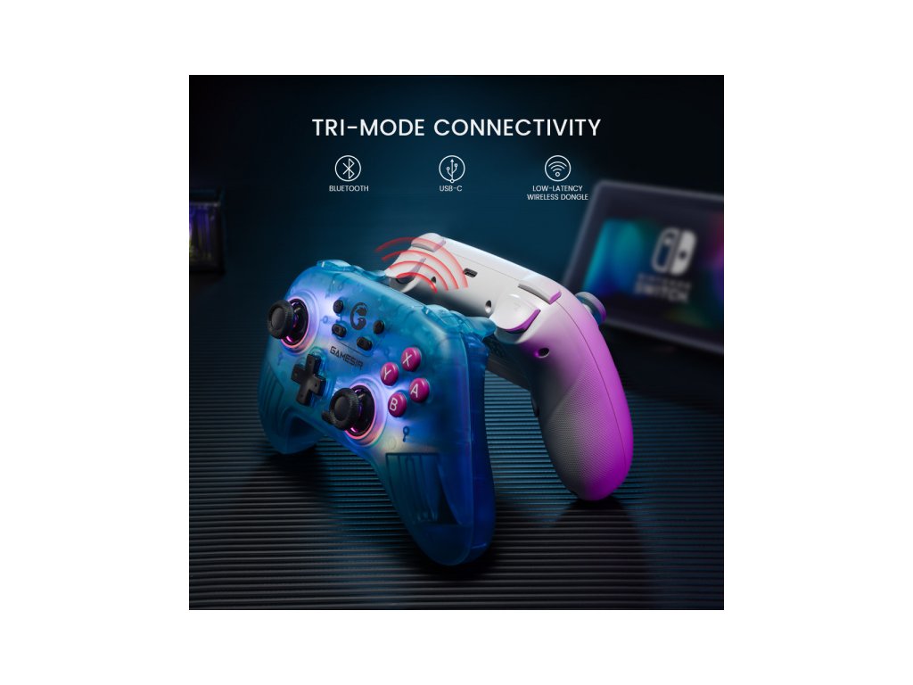 3. Třírežimová konektivita: Užijte si bezkonkurenční flexibilitu díky třem možnostem připojení – Bluetooth, Wireless Dongle a USB-C. Bez námahy přepínejte mezi zařízeními a užijte si bezproblémový herní zážitek.