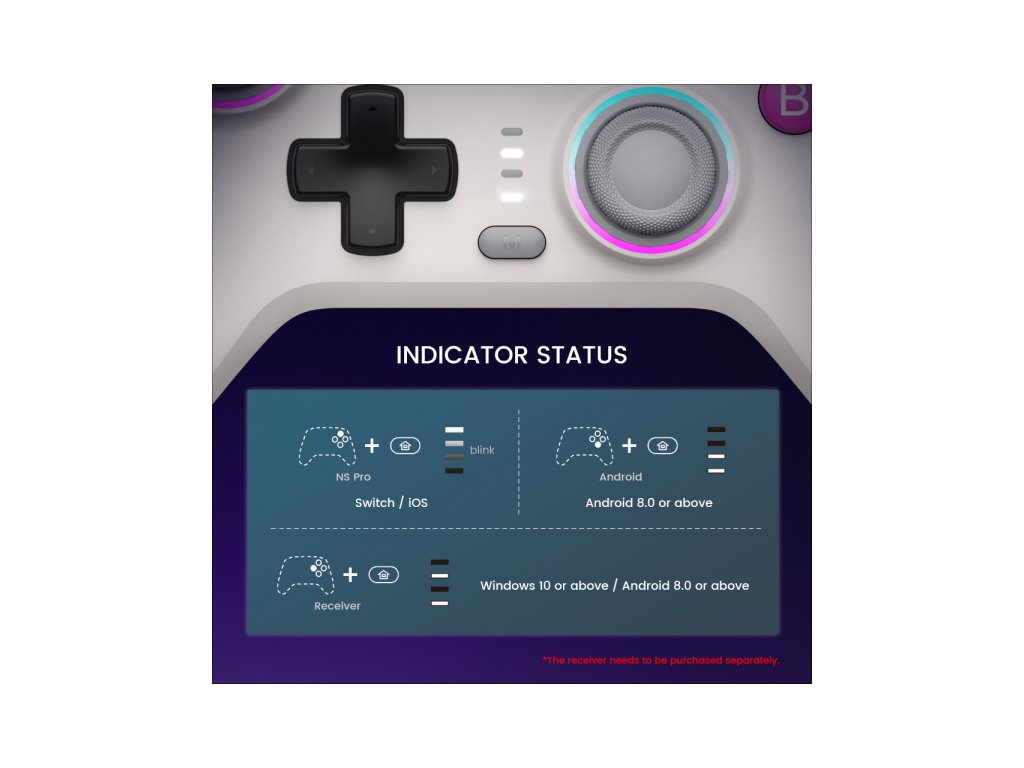 2. 2 stylové kroužky RGB: Přizpůsobte si herní zážitek pomocí personalizovaných a rozmanitých světelných efektů, které nabízejí spektrum barev a sytosti. Přizpůsobte si vzhled ovladače tak, aby odpovídal herní atmosféře, a ponořte se do jedinečného a vylepšeného herního zážitku.