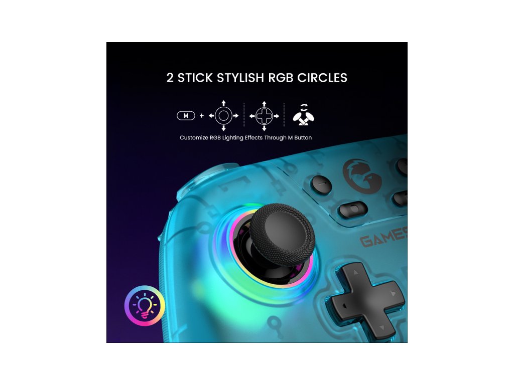 2. 2 stylové kroužky RGB: Přizpůsobte si herní zážitek pomocí personalizovaných a rozmanitých světelných efektů, které nabízejí spektrum barev a sytosti. Přizpůsobte si vzhled ovladače tak, aby odpovídal herní atmosféře, a ponořte se do jedinečného a vylepšeného herního zážitku.