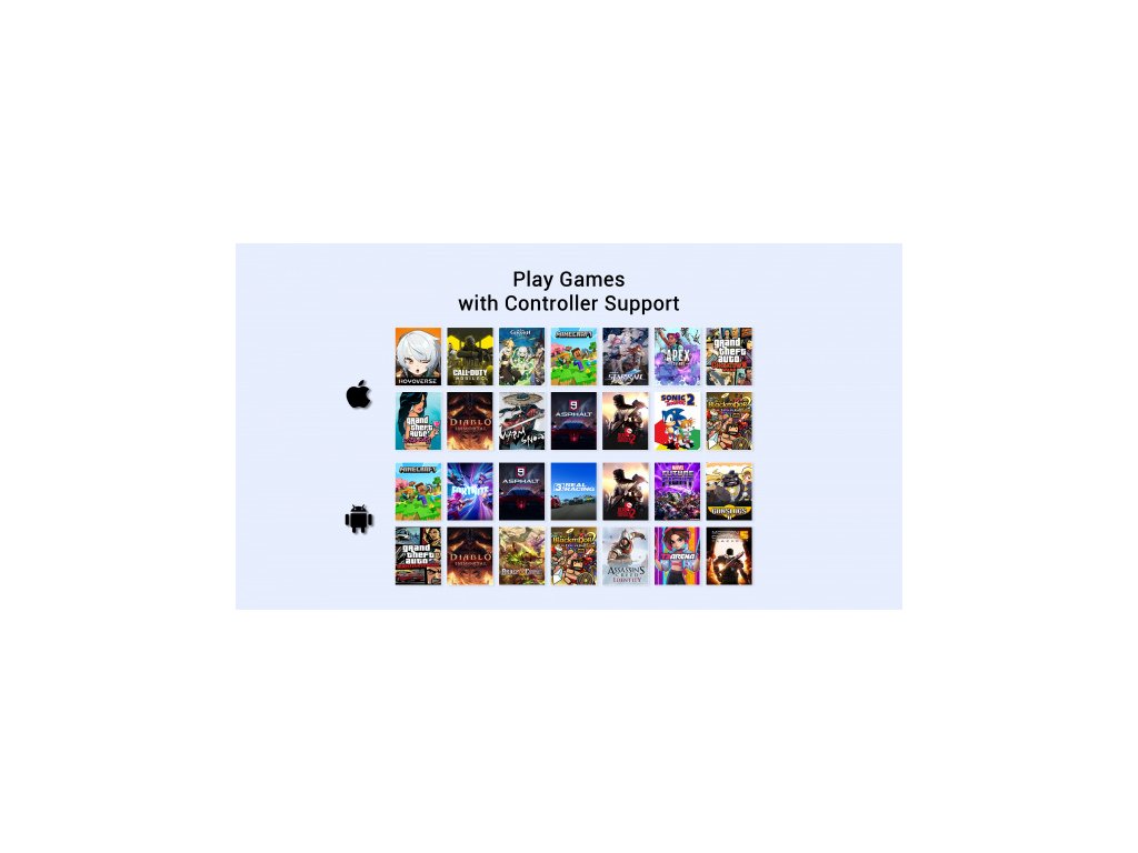 Ovladač X5 Lite se přizpůsobí prakticky jakémukoliv modernímu smartphonu s šířkou mezi 105-213 mm. Kompatibilní se zařízeními: