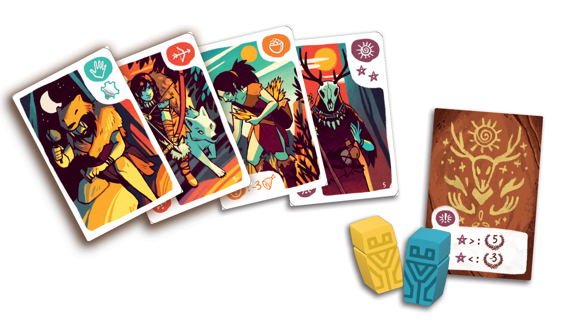 Tato hra patří bezesporu mezi ty, které na první pohled zaujmou svým designem. Po rozložení na stole na nás ze hry dýchla opravdu příjemná atmosféra. Vše je opravdu hezky graficky zpracované, barevná paleta je tvořena výraznými, kontrastními odstíny. Se členy klanu se seznámíme na překrásně ilustrovaných kartách. Orientaci usnadňují také jasné a nápadité symboly, které si rychle osvojíte. Třešničkou na dortu jsou pak tvarované dřevěné figurky totemů.
