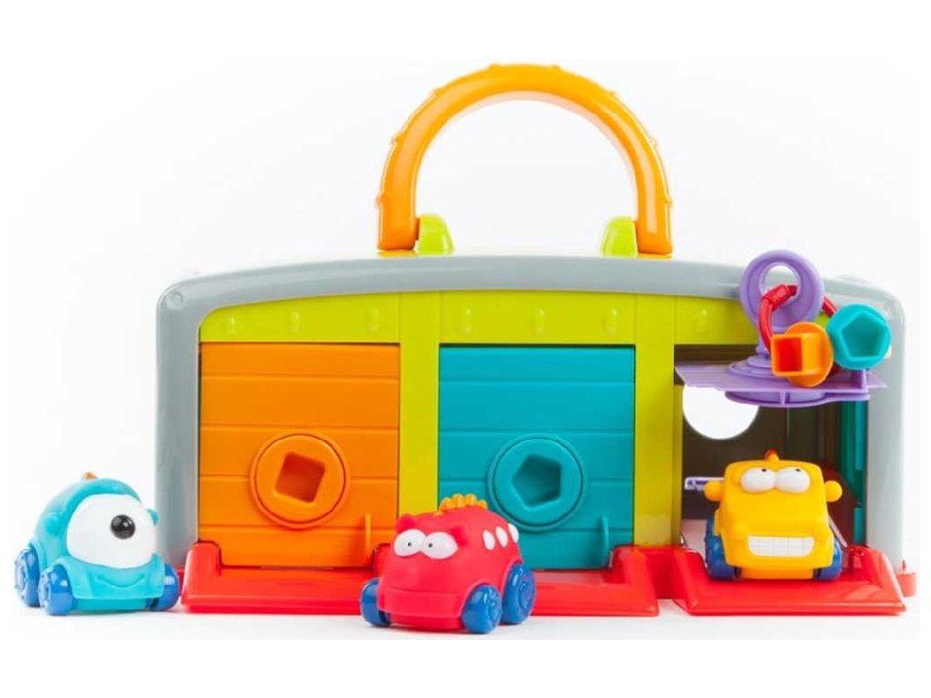Dětská barevná garáž se 3 autíčky z měkkého plastu + 3 klíčky pro každý vjezd. Garáž má poutko a je lehká proto jí Váš brouček snadno přenese kamkoliv jen potřebuje. Obsahuje 3 vjezdy + nájezdy, z nichž každý je na klíček v jiném tvaru (čtverec, trjúhelník a pětiúhelník) - rozvoj myšlení a motoriky. Ze zadní strany garáže je klapka, při jejímž zmáčknutí vyjede autíčko samo ven z garáže.