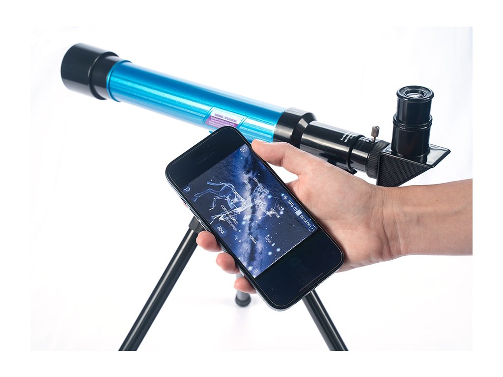Pomocí tohoto teleskopu můžeš pozorovat noční oblohu. Součástí je i kód do mobilní aplikace, která ti pomůže pojmenovat všechny hvězdy na nebi.