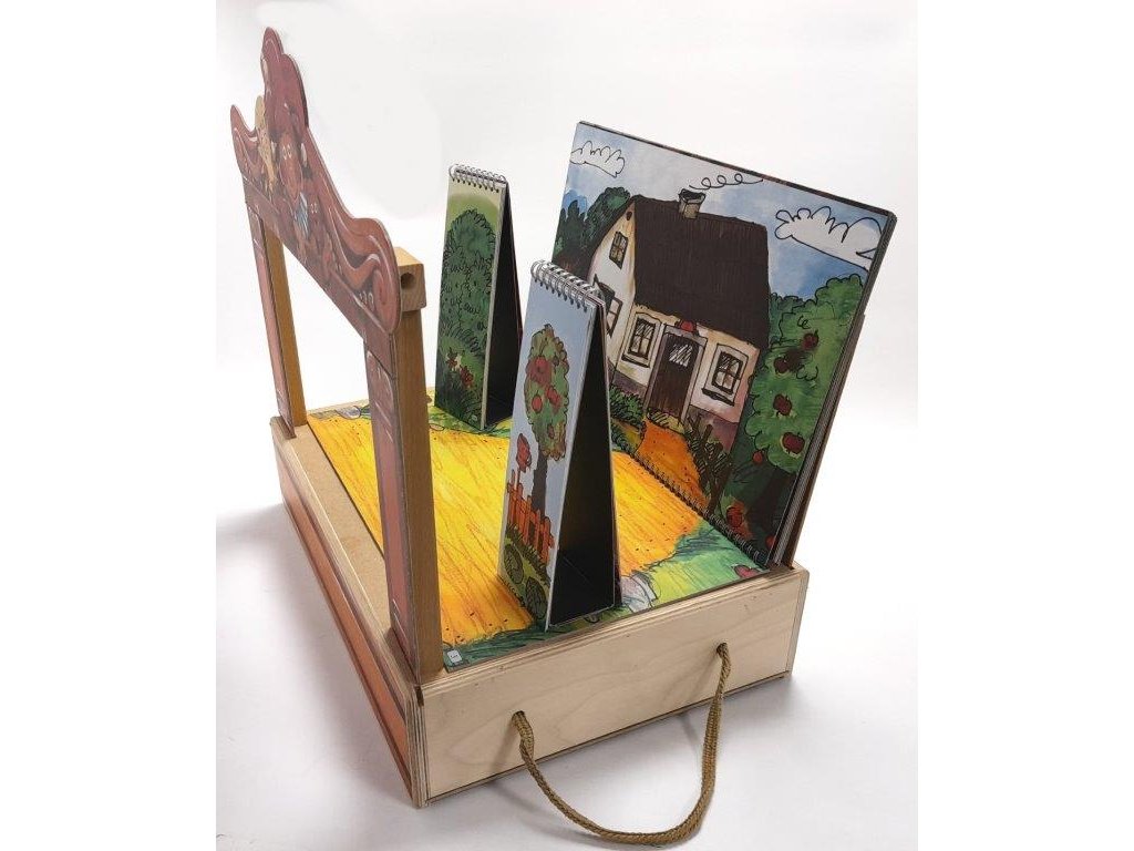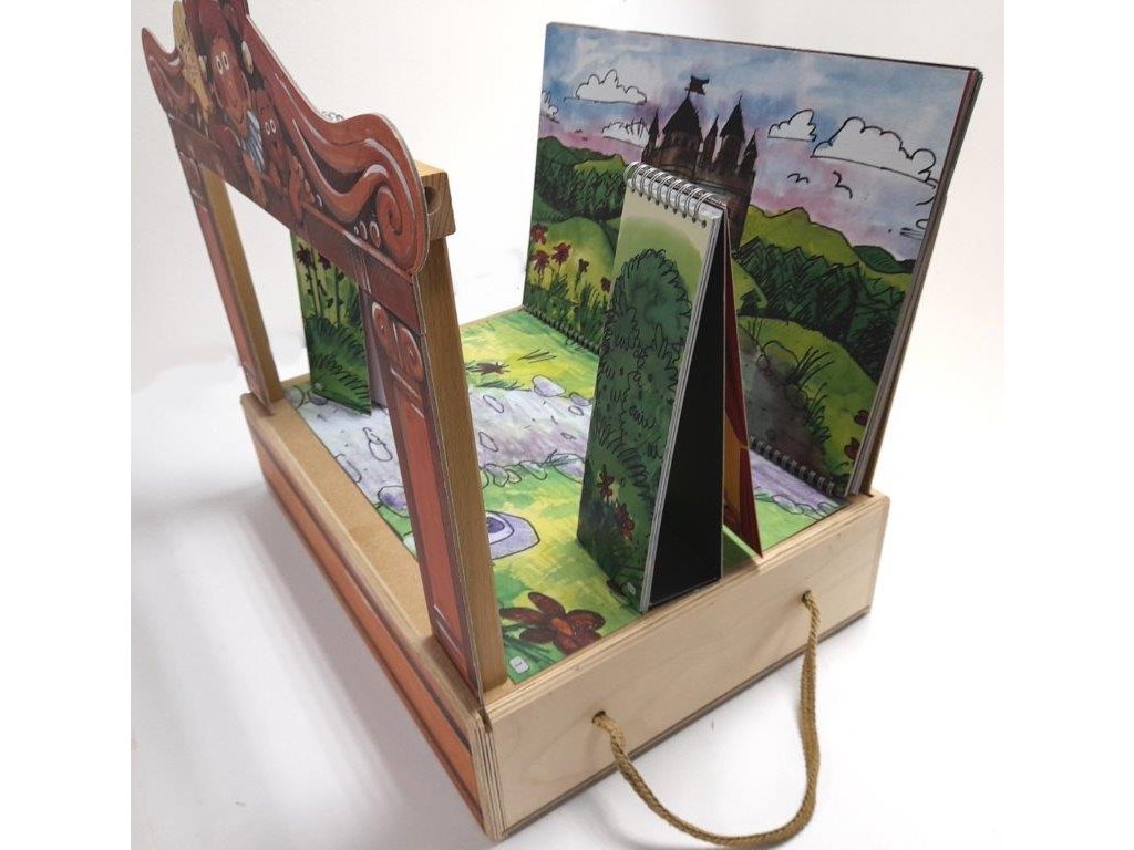 Hledáte velké loutkové divadlo s hromadou loutek? Je tu pro Vás Gerlichovo maxi divadlo se 14 krásnými loutkami. Přinášíme vám krásné, propracované, pohádkové dřevěné loutkové divadlo s jednotlivými loutkami, které probudí u Vašich dětí fantazii, posílí paměťové a výrazové schopnosti a bude bavit celou rodinu. V dřevěné krabici o rozměru 46x41x32 cm naleznete 14 dřevěných loutek z chráněné dílny, 11 barevných scén, proscenium a oponu. Velikost loutek 12-15 cm. Loutky se mohou lišit v barevných detailech. Obsahuje nové scény na kroužkové vazbě (s podlahou) a boční scenérie: na zámku / před zámkempřed chalupou / v chalupěperníková chaloupka / v perníkové chaloupcev lese / u jeskyněv pekle / u rybníkav rybníku Obsahuje loutky: král Ferdinand královna Alžběta princezna Anička princ Slavomír český Honzatříhlavý drakčertík Brunočaroděj Vilémkašpárekbabička Anežkakluk Jeníčekholčička Maruškamyslivec Milošježibaba Dorota Celá loutková sestava je zabalena v praktické dřevěné krabici s posuvným víkem a úchytem. Hlavní vlastnosti: dřevěné divadlo s scénami na kroužkové vazbě, kulisami a 14 loutkaminově řešené scény s podlahou pro ještě lepší divácký zážitekručně vyráběné loutkyrozměry hlavní scény jsou 40x23 cm, rozměry bočních kulis jsou 9,5x23 cmdivadlo lze rozšířit o další loutky