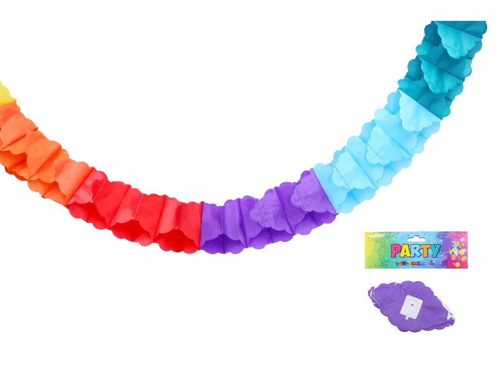 Na správné párty nesmí chybět pořádná výzdoba. Girlandy jsou pro tento účel přímo jako stvořené. Jsou skvělou dekorací do fotokoutku, na zahradní party, dětského pokoje nebo kamkoli jinam. Papírová barevná girlanda o délce 3m.