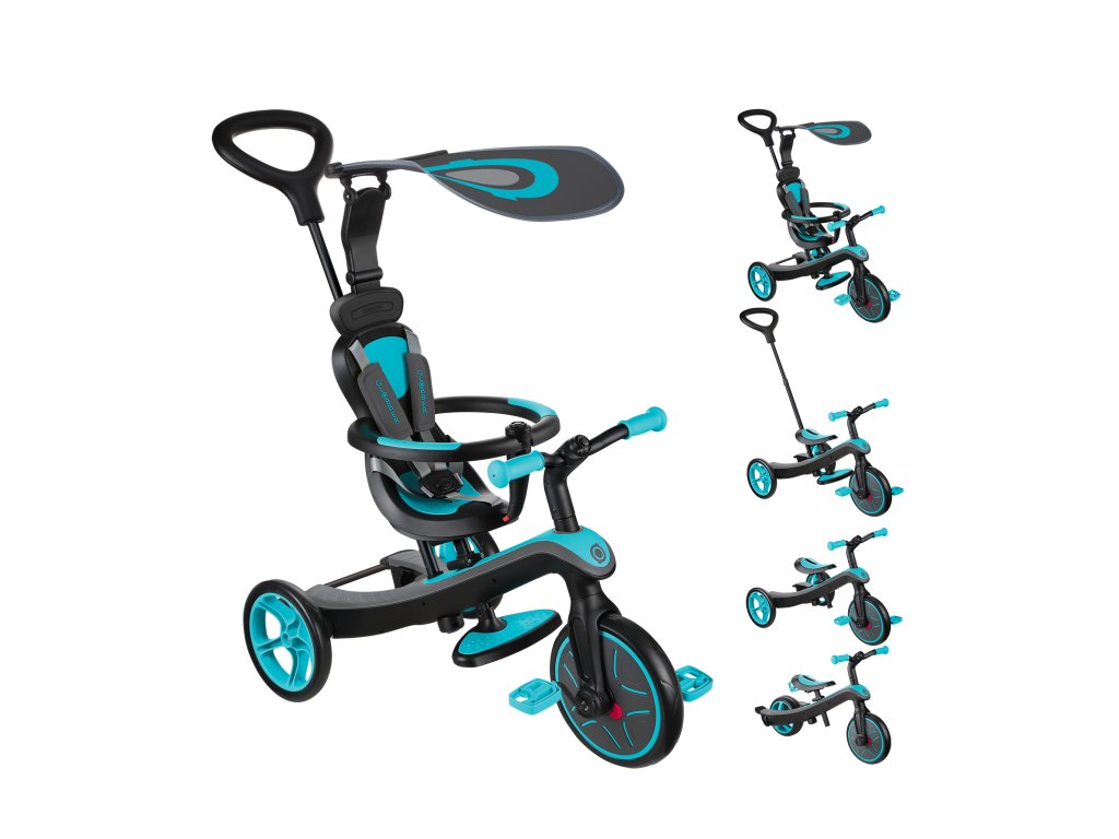 Vyvíjející se tříkolka 4 v 1 se díky různým režimům přizpůsobuje růstu vašeho dítěte. V režimu komfortní tříkolky od 10 měsíců má tato vyvíjející se tříkolka veškerou výbavu, která zaručuje bezpečnost a pohodlí: vysoké sedátko nastavitelné do 2 výšek, opěrka hlavy, zadní brzdy (na každém kole), 5-bodový bezpečnostní pás, bezpečnostní madlo a odnímatelný ochranný kryt. -UV sklápěcí sluneční clona. Směrová hůl je nastavitelná do 2 výšek. Ve tříkolovém režimu, vedeném nebo autonomním, se protiskluzové sedlo nastavuje do 2 výškových úrovní, opěrka nohou je odnímatelná s integrovaným úložným prostorem. Montáž, demontáž, změna režimů bez nářadí. Pohodlná tříkolka, která se přemění na balanční kolo. Komfortní tříkolkový režim: od 10 do 36 měsíců. Režim řízené tříkolky: od 18 do 36 měsíců. Autonomní tříkolkový režim: od 24 do 36 měsíců. Režim vyváženého kola: od 2 do 5 let. Věk: 10 měsíců až 5 let. Hmotnost Kompletní tříkolka: 6,75 Kg. Maximální nosnost 20kg. Přítlačná tyč: nastavitelná do 2 úrovní 92 a 96 cm. Sedák: nastavitelný do 2 úrovní 32 a 35 cm. Přední kolo (250 mm) - zadní kola (220 mm) z EVA pěny, odolné proti propíchnutí a tiché. Zakřivená řídítka s ergonomickými, měkkými a odolnými rukojeťmi. Rozměry režimu Komfortní tříkolka: V. 92/96 cm x D. 95 x l. 47 - váha 6,75 Kg. Rozměry vedená tříkolka: V. 92/96 cm x D. 95 x d. 47 - hmotnost 5,35 Kg. Rozměry autonomní tříkolka: V 53 cm x D. 76,5 x l. 47 - hmotnost 4,46 Kg. Rozměry autonomní tříkolka: V 53 cm x D. 76,5 x l. 38 - váha 4,28 Kg.