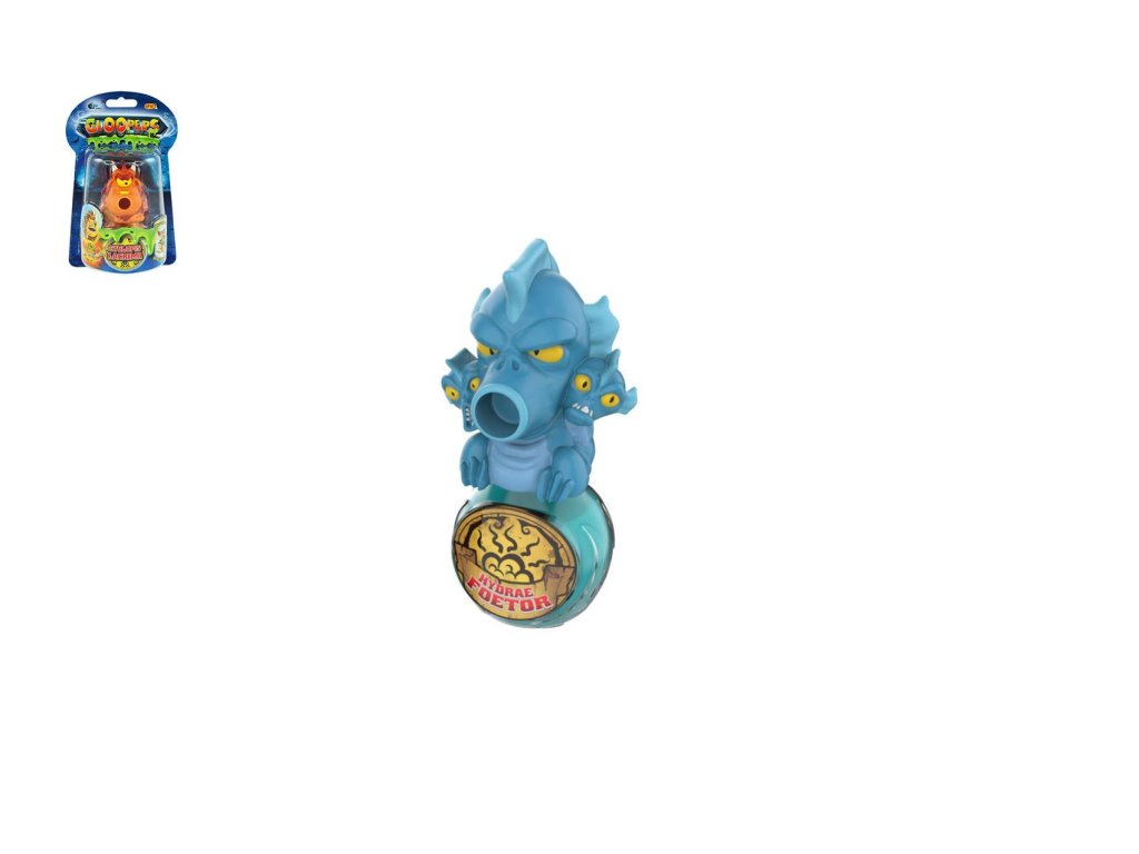 Toto jsou Gloopers, příšerky, které vcucnou snad každý sliz, na který zrovna narazí. A umí ho taky pěkně plivat kolem sebe. Zmáčkněte figurku a nasajte sliz příslušným otvorem na ústech nebo nosu. Pak figurku opět zmáčkněte a PLIV….. sliz je zase venku. Sbírejte je a užijte si ještě více slizské zábavy. Každou figurku lze připevnit na baňku, ve které je sliz. Sada obsahuje figurku Gloopers a baňku se slizem. Pro děti od 6 let.