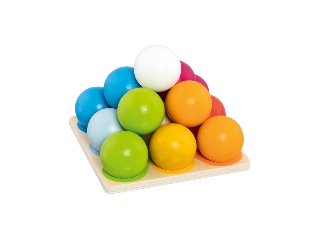 Čtrnáct krásně velkých a barevných kuliček, které mají široké využití ve světě dětí. Děti se učí barvy pojmenovat, třídit je k sobě a podle barev je správně přiřadit na podložku. Skládání pyramidy do výšky nabízí různé kombinace a podporuje tak fantazii a cit pro barvy. A navíc trénuje také motorické dovednosti a trpělivost dětí. Obsah balení: 14 dřevěných barevných kuliček1 dřevěná podložka Hlavní vlastnosti: vyrobeno z masivního dřevatřídění, skládání, kutáleníideální pro interakci mezi dětmirozvíjí motorické dovednosti a trpělivost dětí