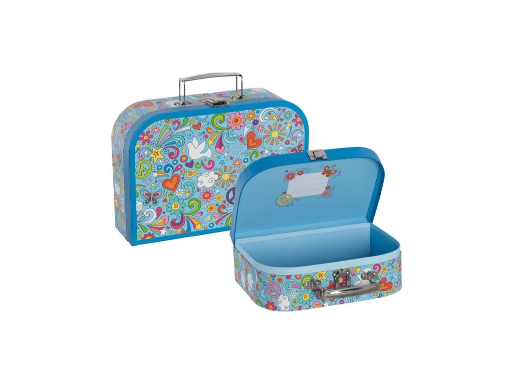 Set 2 kufrů pro malé cestovatele. Cestování s těmito kufry je prima zábava. Zabalit, vybalit, uschovat poklady. To děti milují, ať už doma či na cestách. Kufříky sou vyrobeny ze stabilní lepenky a držáčky jsou plechové. Kéž láska a mír doprovázejí každé dítko na jeho cestě. Hlavní vlastnosti: sada 2 kspraktické kufříky pro dětské pokladymotivy lásky a míru