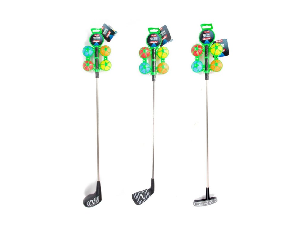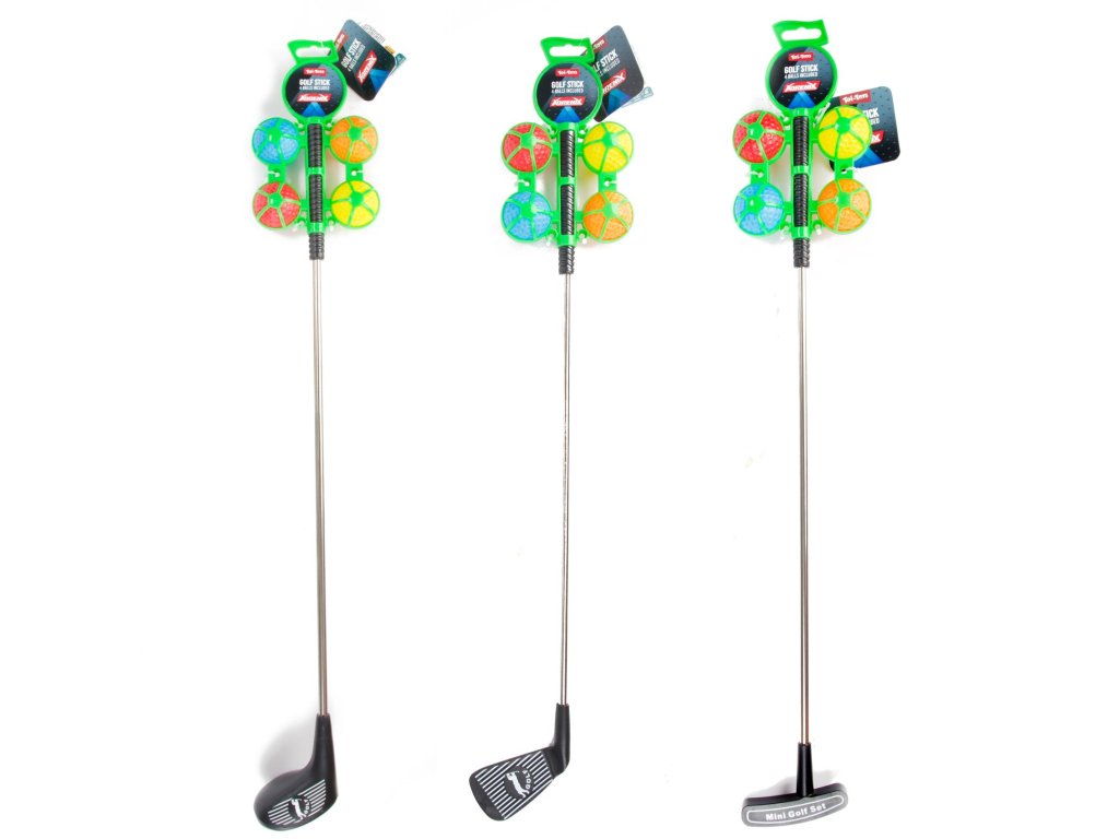 Golfová sada 1ks hůl 60cm + 4ks míček kov/plast 3 druhy