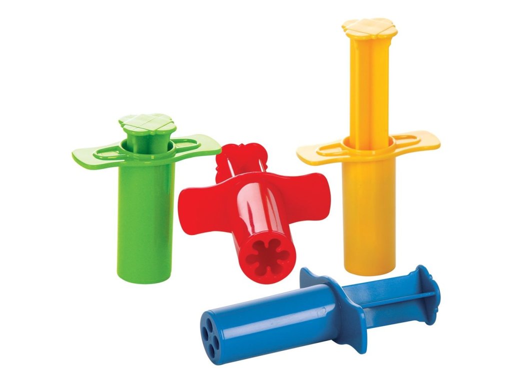 Mladí kreativci si zamilují tyto modelovací vytlačovače, které se perfektně hodí k modelíně nebo kinetickému písku. Barevná sada se 4 vytlačovači děti zabaví na dlouhé hodiny, každý má jiný tvar. Stačí je vysunout, naplnit hmotou a stlačit. Děti nadchne výsledná hmota různých velikostí a tvarů. Vytlačená modelína či jiná hmota může být použita při vyprávění příběhu nebo jen tak pro radost ze hry. Perfektní doplněk k sadě kinetického písku nebo modelíně. Hlavní vlastnosti: odpovídá evropským bezpečnostním standardůmzdokonaluje jemnou motoriku a prostorovou představivost
