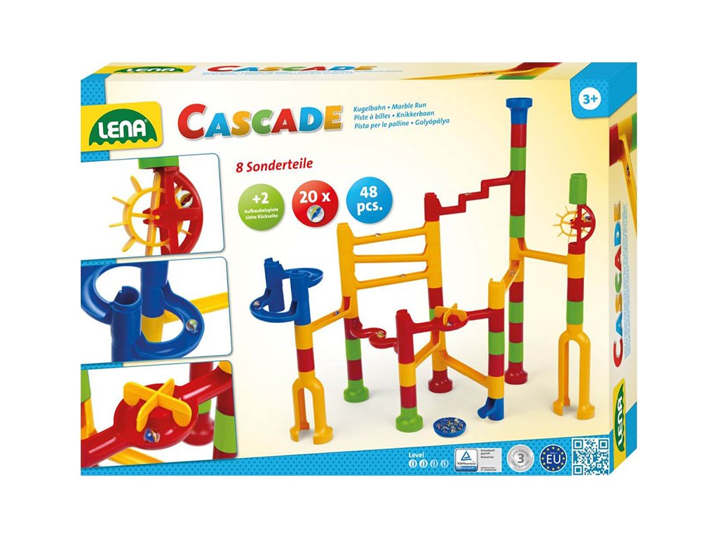 Barevná, plastová kuličková dráha. Balení obsahuje 48 různě sestavitelných dílků a 20 kuliček. Vhodné pro děti od 3 let.