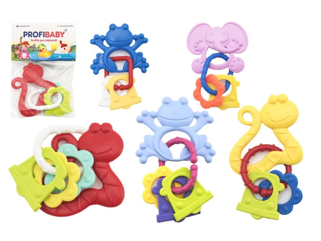 Chrastítko gumové kousátko zvířátko s přívěsky je vhodné pro děti od narození.