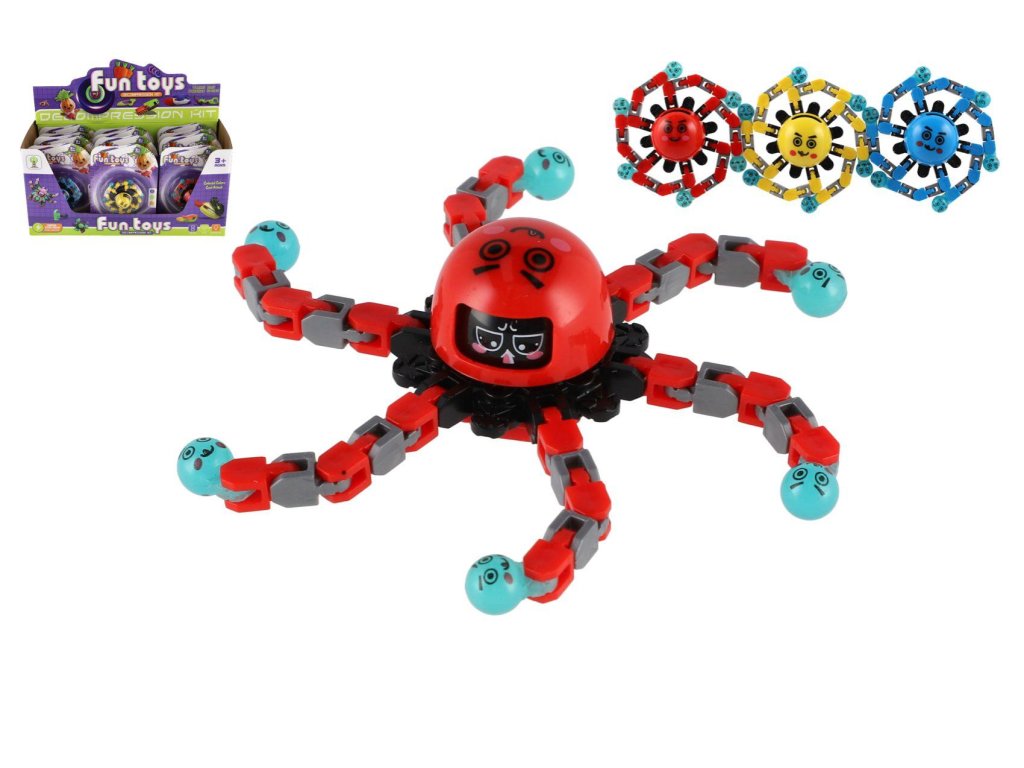 Skvělá hračka pro šikovné a nenechavé ruce. Deformovatelná hračka pro úlevu od stresu založená na mechanickém řetízkovém gyroskopu. Konce "chapadel" jsou ve tmě svítící.