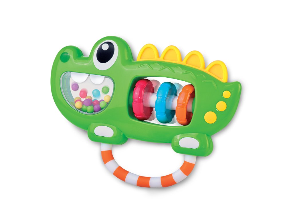 Zábavné chrastítko ve tvaru krokodýla pro nejmenší Roztomilé chrastítko ve tvaru krokodýla značky HAP-P-KID je navrženo speciálně pro malé ručičky vašeho miminka. Díky ergonomickému designu se snadno uchopuje a pomáhá rozvíjet základní motorické dovednosti vašeho dítěte. Hlavní vlastnosti: Ergonomický design: Speciálně navrženo pro snadné uchopení malými ručičkami Veselý design krokodýla: Jasné barvy upoutají pozornost dítěte Jemný chrastící zvuk: Stimuluje sluchové vnímání a zvědavost Bez BPA: Vyrobeno z materiálů bezpečných pro miminka Rozvoj dovedností: Podporuje koordinaci ruka-oko, úchop a motivuje k lezení Technické specifikace: Materiál: Bezpečný plast bez obsahu BPA Věkové doporučení: Od 6 měsíců Čištění: Snadno omyvatelné Vzdělávací hodnota: Toto chrastítko je skvělým pomocníkem pro upoutání pozornosti batolat a rozvoj jejich koordinace ruka-oko, schopnosti úchopu a motivace k lezení. Jasné barvy a zajímavý tvar krokodýla stimulují vizuální vnímání, zatímco chrastící zvuk rozvíjí sluchové vnímání. Ideální první hračka, která spojuje zábavu a učení! HAP-P-KID Chrastítko Krokodýl rozjasní den vašeho miminka a podpoří jeho zdravý vývoj.