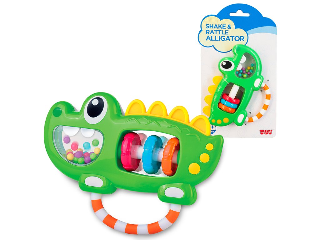 Zábavné chrastítko ve tvaru krokodýla pro nejmenší Roztomilé chrastítko ve tvaru krokodýla značky HAP-P-KID je navrženo speciálně pro malé ručičky vašeho miminka. Díky ergonomickému designu se snadno uchopuje a pomáhá rozvíjet základní motorické dovednosti vašeho dítěte. Hlavní vlastnosti: Ergonomický design: Speciálně navrženo pro snadné uchopení malými ručičkami Veselý design krokodýla: Jasné barvy upoutají pozornost dítěte Jemný chrastící zvuk: Stimuluje sluchové vnímání a zvědavost Bez BPA: Vyrobeno z materiálů bezpečných pro miminka Rozvoj dovedností: Podporuje koordinaci ruka-oko, úchop a motivuje k lezení Technické specifikace: Materiál: Bezpečný plast bez obsahu BPA Věkové doporučení: Od 6 měsíců Čištění: Snadno omyvatelné Vzdělávací hodnota: Toto chrastítko je skvělým pomocníkem pro upoutání pozornosti batolat a rozvoj jejich koordinace ruka-oko, schopnosti úchopu a motivace k lezení. Jasné barvy a zajímavý tvar krokodýla stimulují vizuální vnímání, zatímco chrastící zvuk rozvíjí sluchové vnímání. Ideální první hračka, která spojuje zábavu a učení! HAP-P-KID Chrastítko Krokodýl rozjasní den vašeho miminka a podpoří jeho zdravý vývoj.