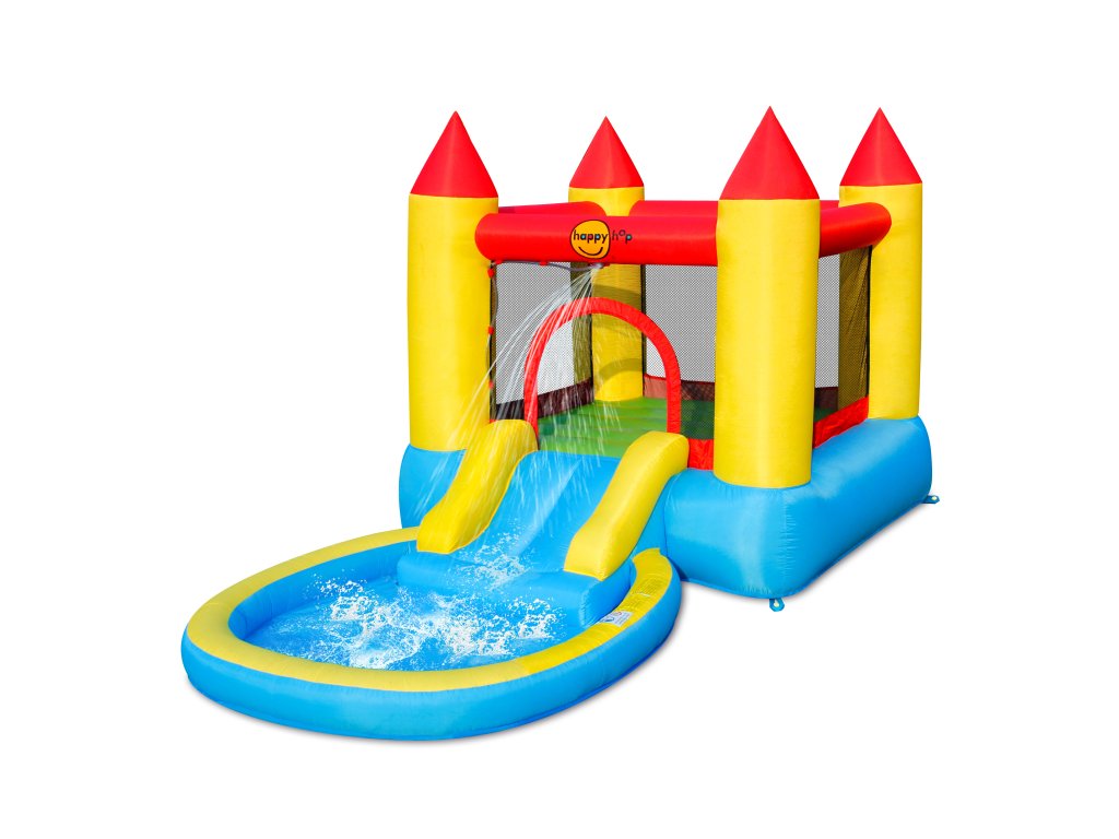 Skvělá kombinace skákacího hradu s vodními radovánkami! Pokud skákací hrad připojíte na vodu, slouží pak i na letní radovánky s vodním vodotryskem a bazénkem s vodou. Rozměry a kapacita Rozměr: 3,7m x 2mVýška: 1,9mVelikost: 7,5m²Určeno pro 2 děti současně Obsah balení 1x skákací atrakce1x fukar 220V / 310W4x kolíky velké4x kolíky malé1x přepravní taška1x sada pro opravy1x český návod30x míček1x sada pro rozvod vody Kvalita Happy HopNabízíme nejširší výběr a nejnižší ceny značkové kvality nafukovacích atrakcí Happy Hop. Kvalitní materiály, dvojité šití, bezporuchový fukar, skvělý design a lákavé barvy. To jsou hlavní kvality skákacích hradů a nafukovacích atrakcí Happy Hop. Technické vlastnosti Vše včetně fukaru najdete v jedné dárkové krabiciNafouknuto do 30 sekundVšechny skákací hrady Happy Hop jsou vyrobeny z pevného materiálu PVC s laminací a vrstveného nylonuPevnost a kvalita je garantována dvojitým šitím atrakce Happy HopVšechny průhledné části jsou zajištěny pevnou sítíNení určeno pro komerční využití Důležitá upozornění⚠️ NEVHODNÉ PRO DOSPĚLÉ OSOBY. DOSPĚLÍ NESMÍ TENTO VÝROBEK POUŽÍVAT.⚠️ NEVHODNÉ K PRONÁJMU NEBO KOMERČNÍMU POUŽÍVÁNÍ.⚠️ NEZBYTNÉ SESTAVENÍ DOSPĚLOU OSOBOU.⚠️ NEZBYTNÝ DOZOR DOSPĚLÉ OSOBY.⚠️ Pouze pro domácí použití.⚠️ Určeno pro venkovní použití.⚠️ POUŽÍVAT POUZE NA MĚKKÉM PODKLADU.