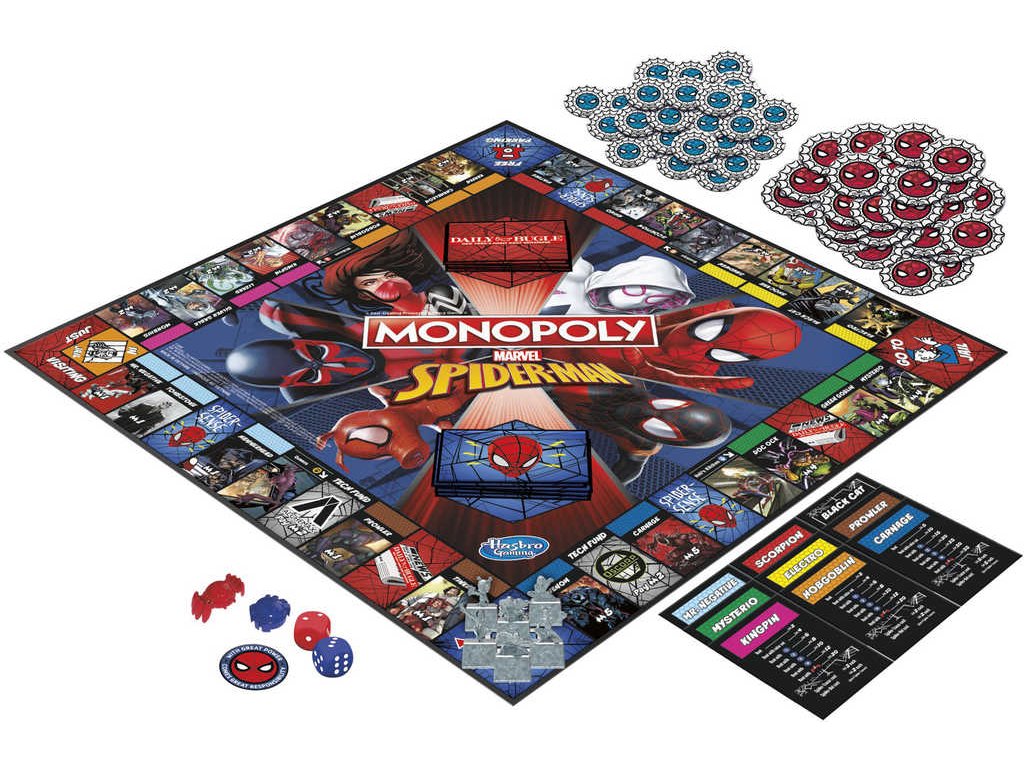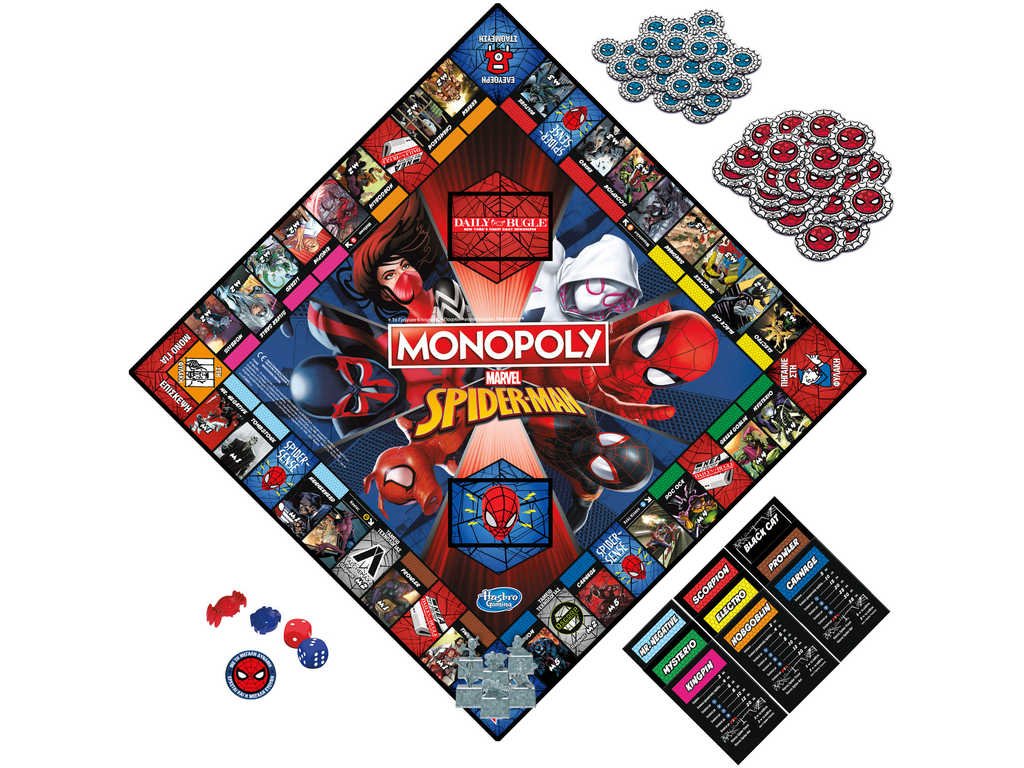 padouchy. Monopolní žetony představují šest hrdinů z celého Spider-Man Universe. Hráči mohou využít zkratky metrem, uchopit Symbol velké odpovědnosti a odemknout jedinečnou schopnost