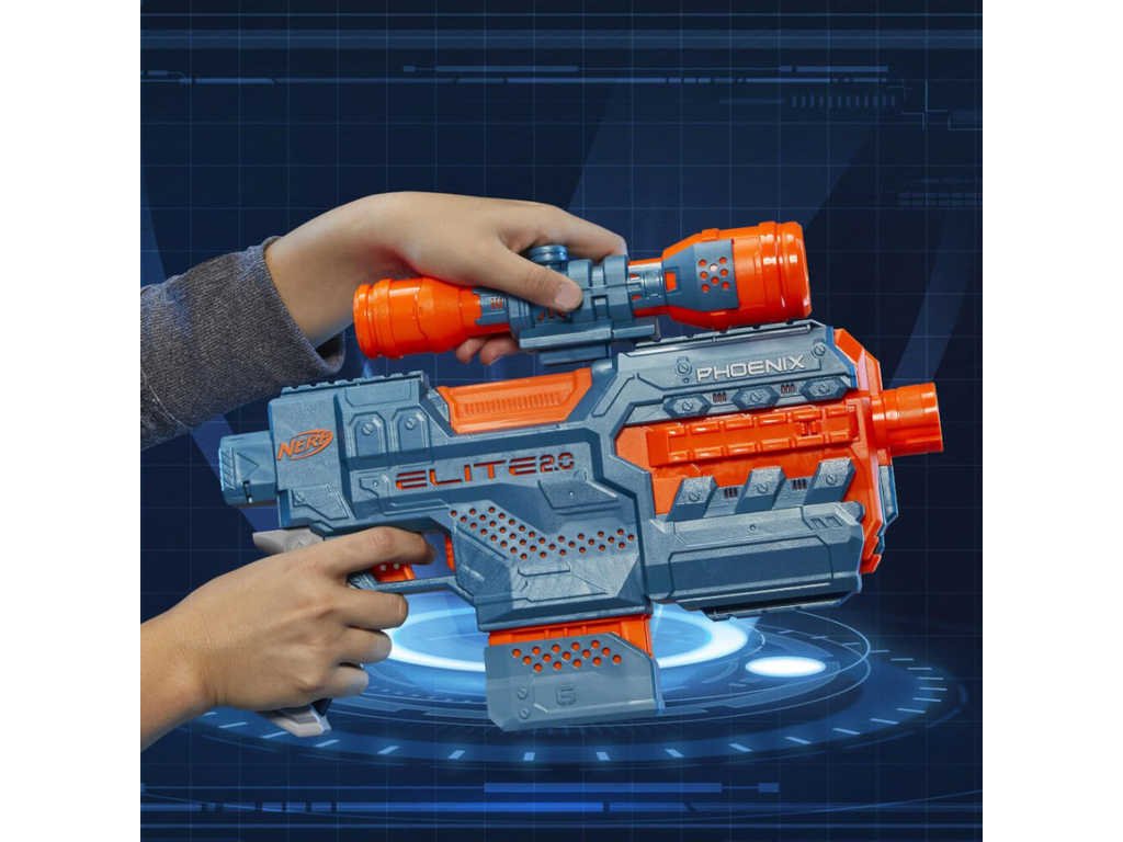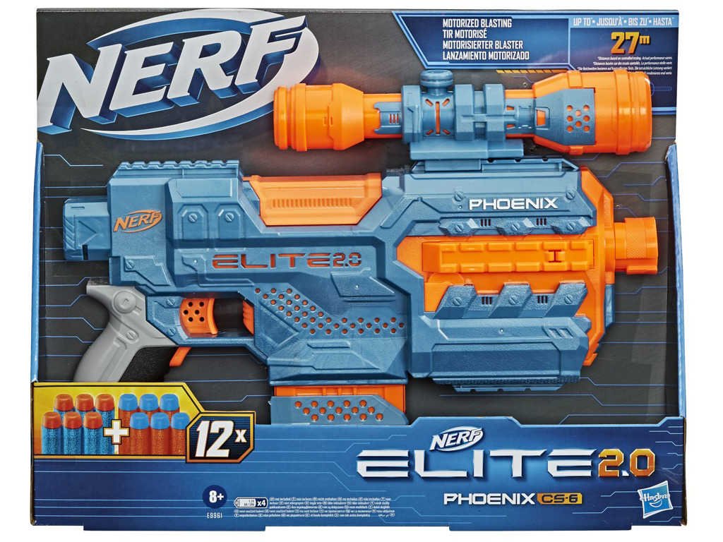 puškohledem, stisknout akcelerační spoušť a hurá do akce! Tento dokonale zpracovaný Nerf Elite Phoenix CS-6 vystřeluje šipky až do vzdálenosti 27 metrů. Skvělá modro-oranžová pistole nenechá
