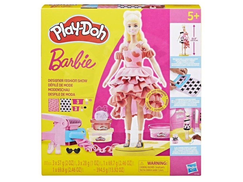 Vytvořte super roztomilé styly se sadou Play-Doh Barbie pro panenky. S touto kreativní sadou je výroba oblečení pro panenku Barbie snadná a zábavná. Jednoduše umístěte panenku na stojan, použijte vzorník a formičky Play-Doh k vystříhání šatů pro Barbie a oblečte ji těmi nejnápaditějšími způsoby. Vytvořte panence dva různé účesy z Play-Doh s formičkami na krátké a dlouhé vlasy nebo si vytvořte vlastní účesy ručně. Přidejte doplňky Barbie, jako je pásek a boty, a dotvořte její vzhled. Obsah sady: 1 x panenka, 1 x stojan pro panenku, 1 x 68,3 g plát modelovací hmoty, 2 x 57 g modelovací hmota, sada doplňků a formiček. Výška panenky 30 cm. Baleno v krabičce. Rozměry balení: 31,8 x 27,9 x 4,4 cm. Věk: 5+