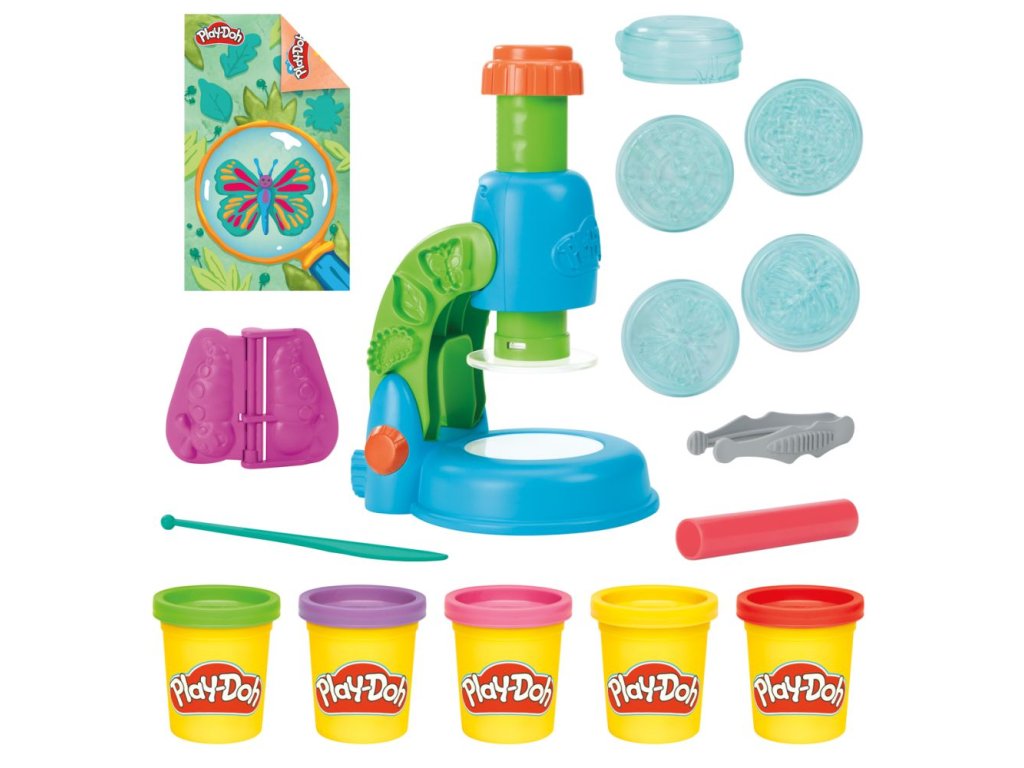 Se sadou Play-Doh Mikroskop se rozzáří dětská zvídavost a představivost. Hračka se svítícím mikroskopem dodá zářivý efekt výtvorům z modelíny Play-Doh, které mohou děti vytvářet na 4 průhledných sklíčkách. Stačí vybrat sklíčko, vyplnit ho modelínou a stisknutím dalekohledu dolů výtvor vyrazit a aktivovat světlo. Vytvořte barevné rostliny, brouky a mikroorganismy a zkoumejte je v Petriho misce. Hrací podložka s motivy přírody, 2 karty aktivit a 5 kelímků s modelínou Play-Doh jim poskytne spoustu inspirace a zabaví je všestrannou zábavou. Tato sada Play-Doh obohacuje přírodovědné hračky o kreativní a výtvarné aktivity a je skvělým dárkem pro chlapce i dívky. Sada obsahuje: mikroskop, 4 průhledná sklíčka, formu na housenku, Petriho misku, pinzetu, podložku, 2 karty aktivit, váleček, nůž a 5 kelímků modelíny. Baterie: 3 x AAA nejsou součástí. Rozměry balení: 21,5 x 27,9 x 6,66 cm. Věk: 3+