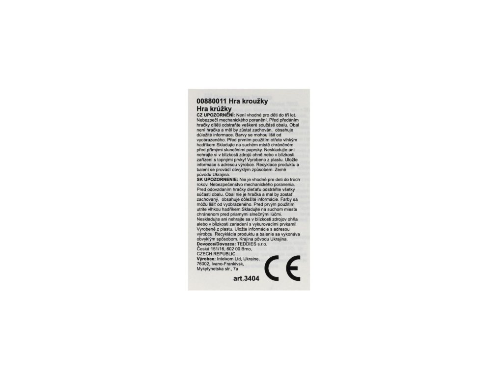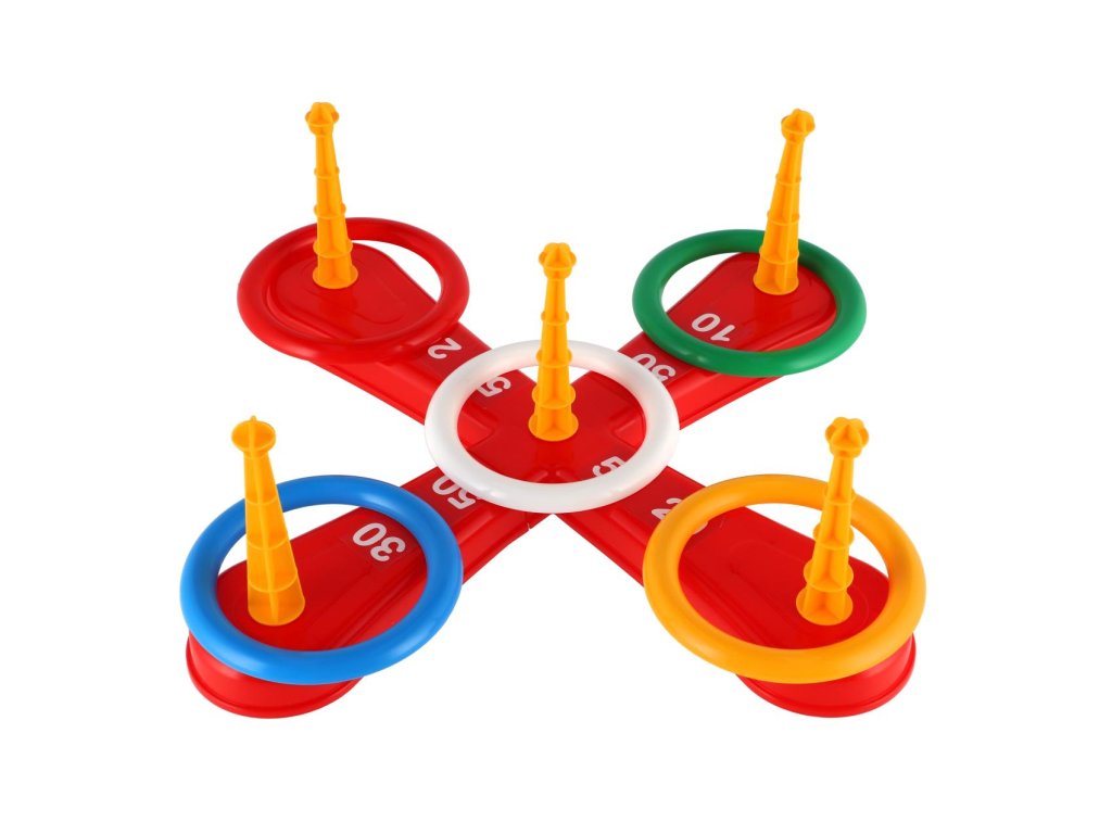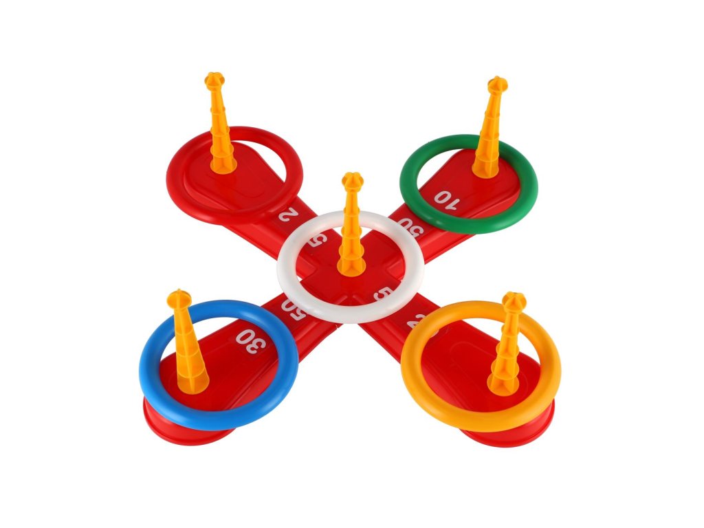 Zábavná hra, při které se hází kroužky na kříž. Balení obsahuje kříž s pěti hroty a pět barevných kroužků. Jednotlivé dílky jsou vyrobené z plastu. Tato hra se bude líbit zejména nejmenším dětem, které mohou sbírat body za každý hod, kdy se jim podaří umístit kroužek na hrot. Natrénují si také přesnost a trpělivost.