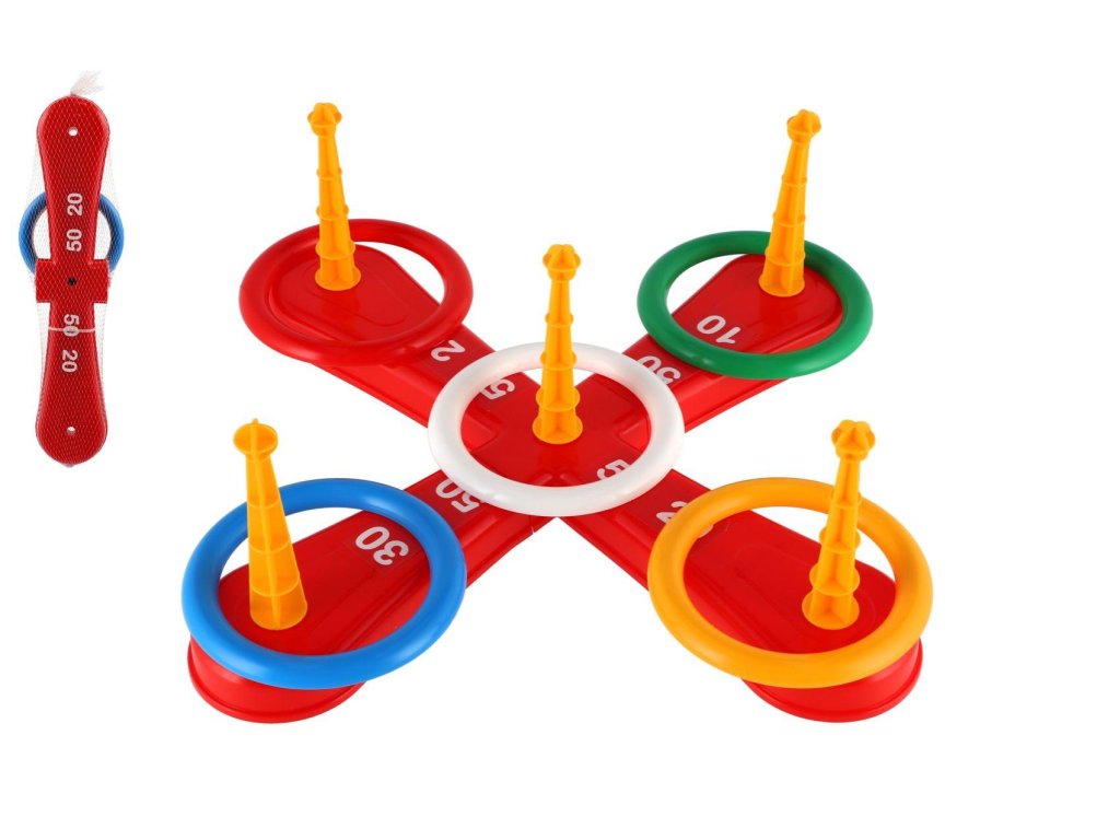 Zábavná hra, při které se hází kroužky na kříž. Balení obsahuje kříž s pěti hroty a pět barevných kroužků. Jednotlivé dílky jsou vyrobené z plastu. Tato hra se bude líbit zejména nejmenším dětem, které mohou sbírat body za každý hod, kdy se jim podaří umístit kroužek na hrot. Natrénují si také přesnost a trpělivost.
