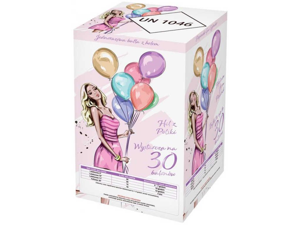 S touto héliovou bombou nafouknete 30ks (9"/22,9cm) latexových balónků. Lze použít i k nafukování fóliových balónků (18" / 16 balónků). Láhev s héliem je pro jedno použití a je nevratná.