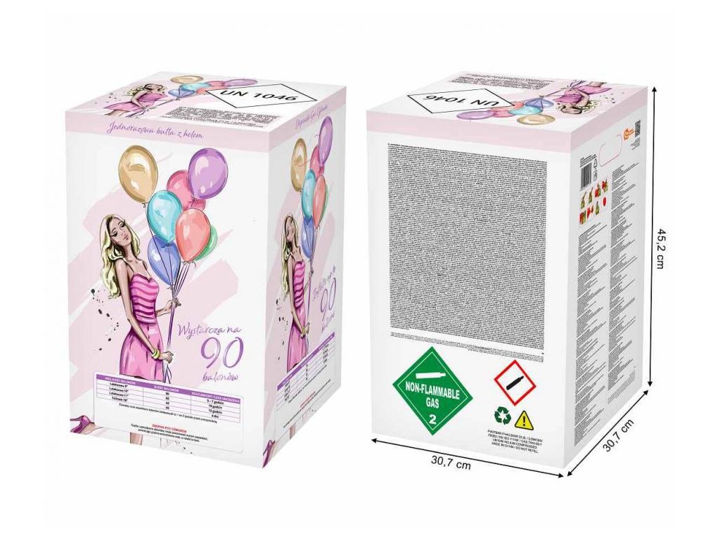 Helium 594-713l jednorázové na plnění až 90ks latexových balónků o průměru 23cm