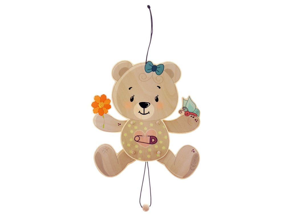 Tento závěsný pohyblivý medvídek je lákavým poutačem do každého pokojíčku. Medvídek je vyroben z březového dřeva. Zatažením za provázek s kuličkou medvídek pohybuje nožkami a ručkami. Hlavní vlastnosti: závěsný a pohyblivý medvídekpoutavý vzhledvyrobeno z březového dřeva