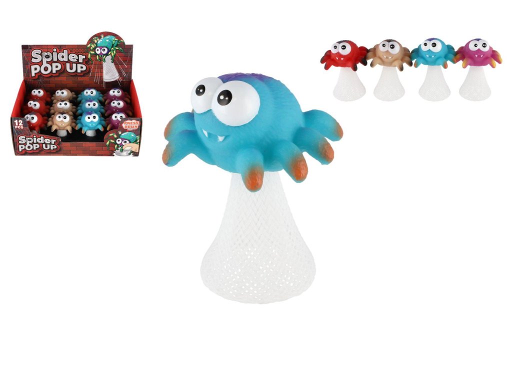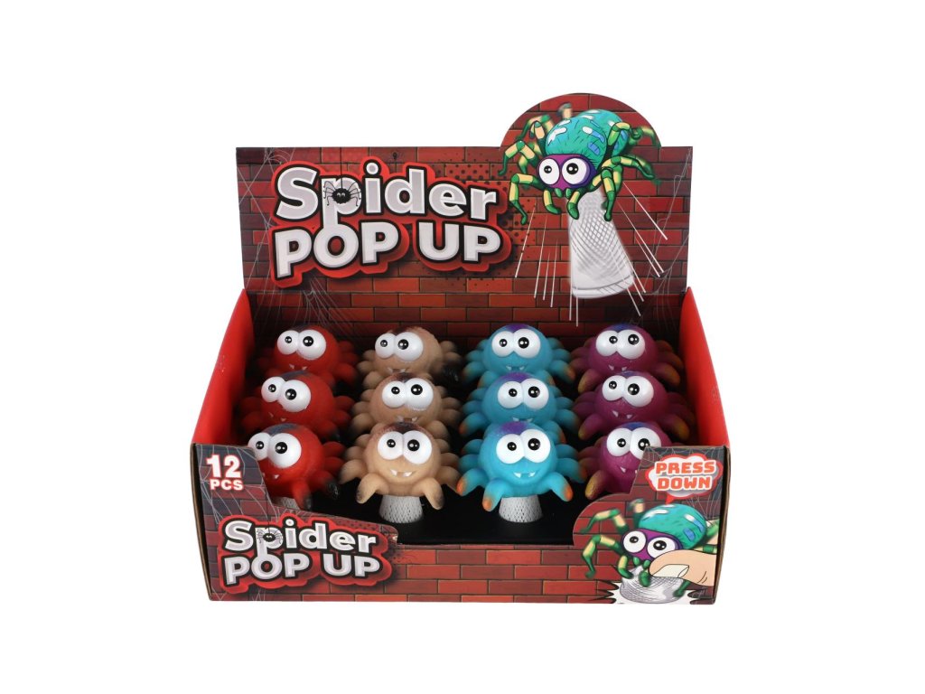 Hip Hop pavouk vyskakující plast 9cm 4 barvy 12ks v boxu