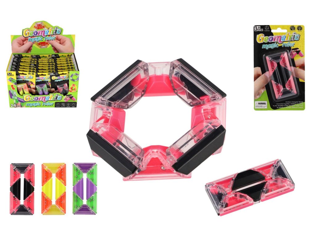 Hlavolam obdelník s kuličkami plast 4x8cm 3 barvy na kartě 24ks v boxu