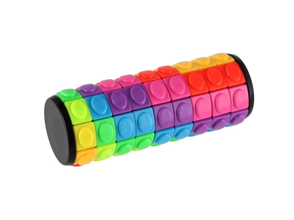 Hlavolam válec/věž barevný plast 11cm v krabičce 8x25x4,5cm